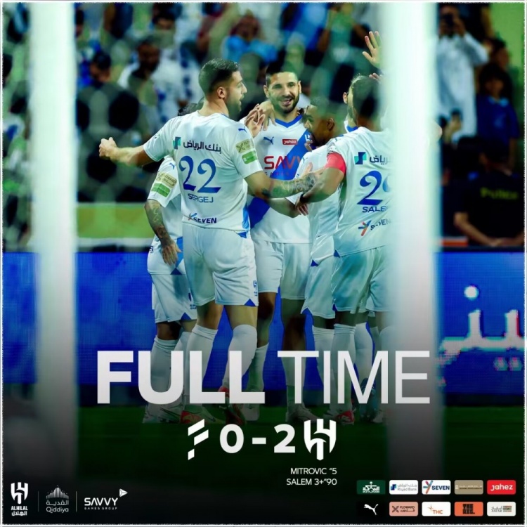 利雅得新月:37-布努、3-库利巴利、5-布莱希、12-沙赫拉尼(81' 2-布莱克)、66-阿卜杜勒哈米德(94' 87-坦巴蒂)、8-内维斯、22-米林科维奇(74' 28-穆罕默德-卡努)、29-萨勒姆-多萨里、96-迈克尔、77-马尔科姆、9-米特洛维奇(94' 14-哈姆丹)