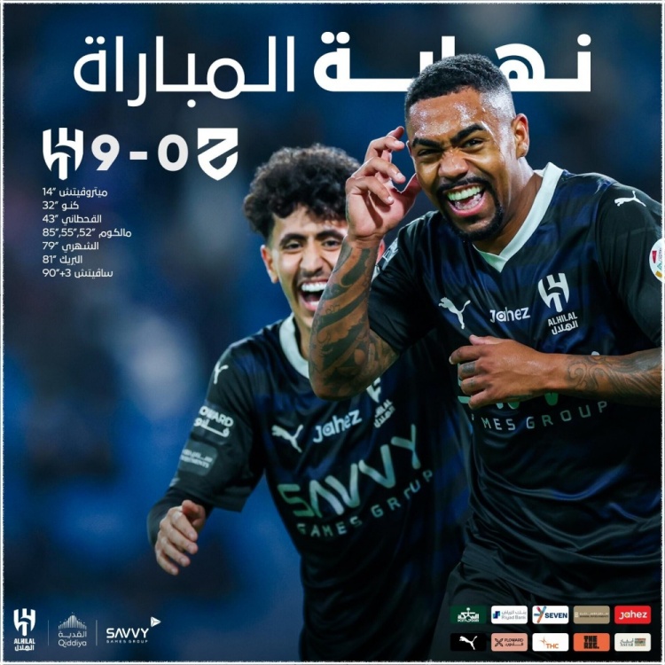 第85分钟,法拉杰做球,马尔科姆低射破门戴帽,利雅得新月8-0哈森姆。↓