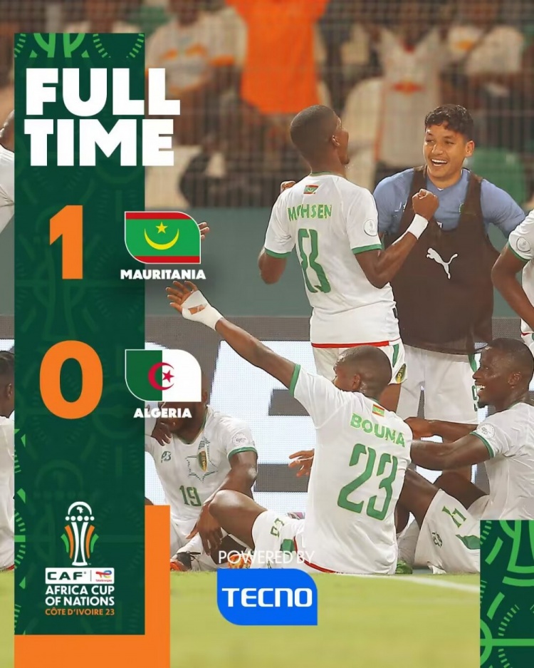 全场比赛结束,阿尔及利亚0-1毛里塔尼亚。
