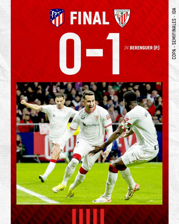 2月8日讯 国王杯半决赛首回合,马竞主场迎战毕尔巴鄂竞技。上半场雷尼尔多送点贝伦格尔点射建功。易边再战,双方互有攻防但均破门乏术,莫拉塔错失良机后造点但被VAR取消。最终马竞0-1毕尔巴鄂竞技,次回合比赛将在北京时间3月1日移师毕巴主场进行。