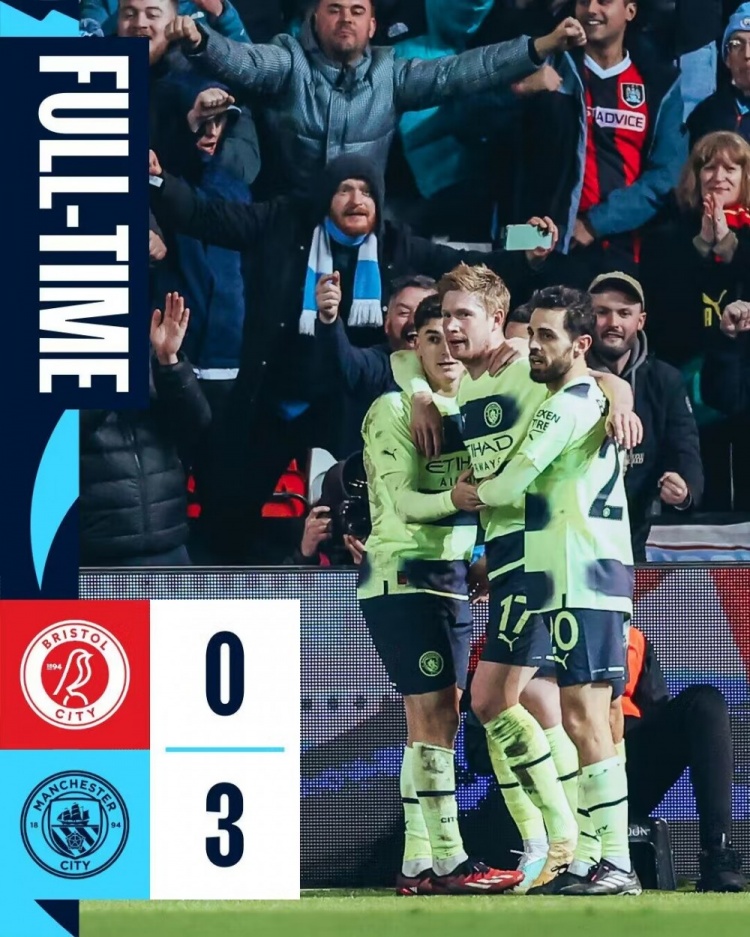 3月1日讯 北京时间3月1日04:00,英格兰足总杯1/8决赛曼城客场挑战布里斯托城的比赛,上半场菲利普斯中柱,福登推射破门,下半场福登完成梅开二度,德布劳内远射破门,最终曼城客场3-0布里斯托城成功晋级。
