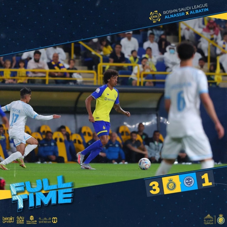 3月4日讯北京时间3月4日凌晨1:30,沙特联赛第19轮。利雅得胜利对阵巴腾。上半场,伦佐头球破门为巴腾取得领先,C罗空门机会遭门线解围;下半场,加里卜、法蒂尔、马兰在补时阶段连入三球帮助利雅得胜利完成逆转。全场比赛结束,利雅得胜利3-1巴腾!