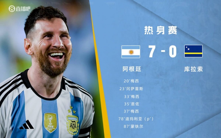 下半场补时1分钟,阿根廷7-0库拉索。