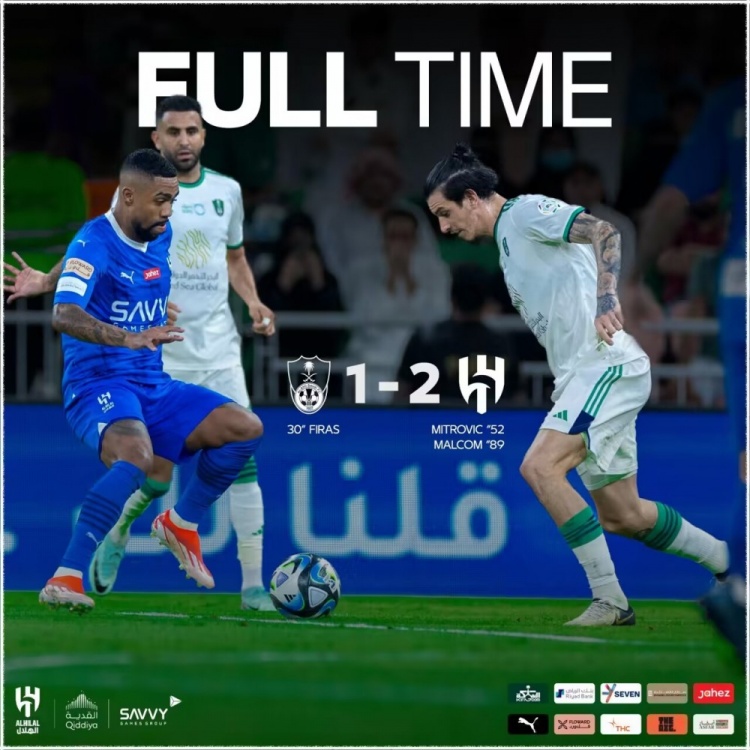 新月逆转绝杀!马尔科姆一条龙!第89分钟,马尔科姆从中场启动推进,一路长驱直入连过数人,最后面对门迪抢射破门,吉达国民1-2利雅得新月!↓