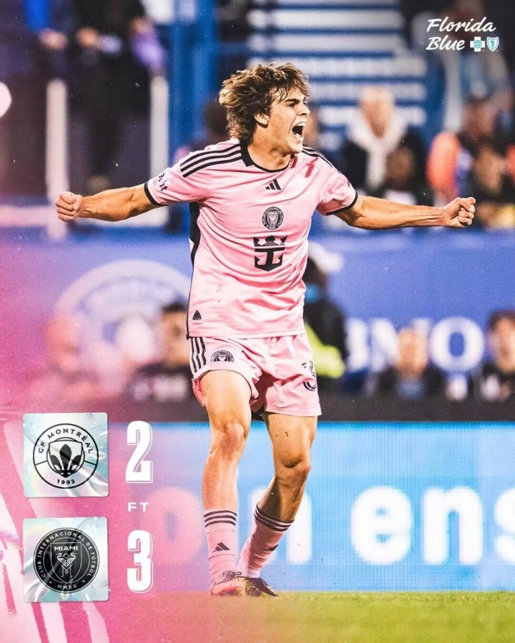 伤停补时6分钟。全场比赛结束, 蒙特利尔冲击2-3迈阿密国际。
