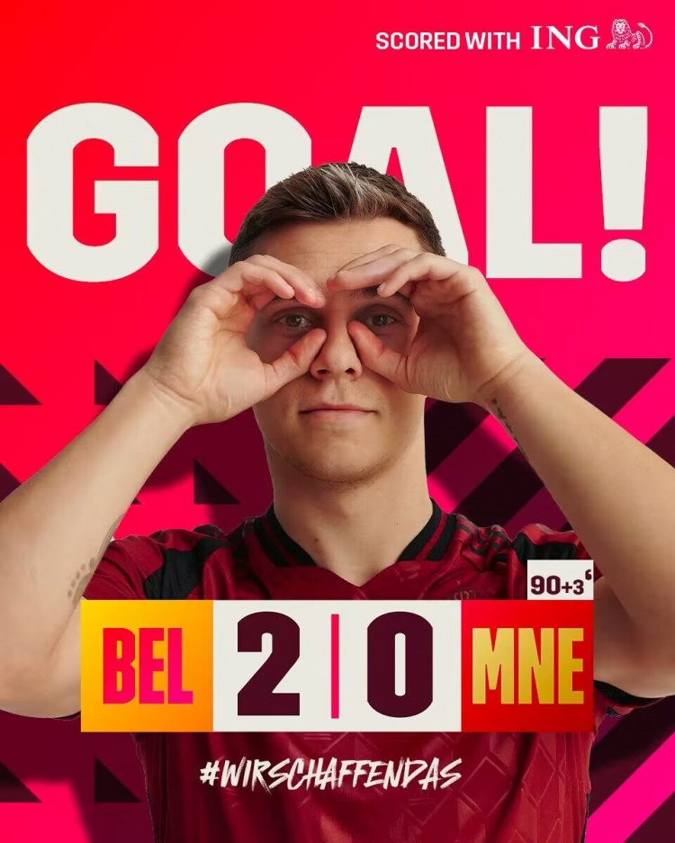 第90+2分钟,特罗萨德主罚点球稳稳命中!比利时2-0黑山↓