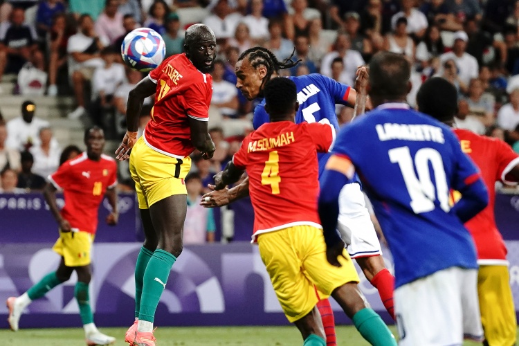 7月28日讯 北京时间7月28日凌晨三时,奥运男足小组赛A组第二轮,法国队对阵几内亚。上半场,法国队控球占优,但制造的机会不如几内亚多,马特塔单刀被扑,尾声阶段和补射阶段,凯塔和图雷的进球都因越位在先被吹。半场战罢,法国队暂0-0几内亚;下半场,卡里姆恩多射门中柱,奥利斯助攻西尔迪西亚头球到僵局。全场比赛结束,法国队1-0几内亚!