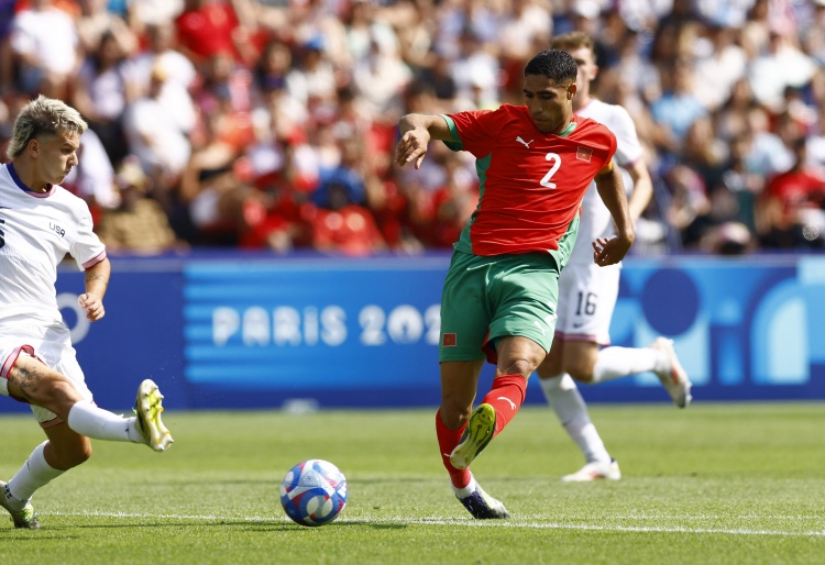 8月2日讯 北京时间8月2日21:00 奥运男足1/4决赛,摩洛哥U23对阵美国U23。上半场比赛,拉希米造点亲自命中;下半场比赛,阿克霍马奇与阿什拉夫破门,毛胡布最后时刻点射锁定胜局。。