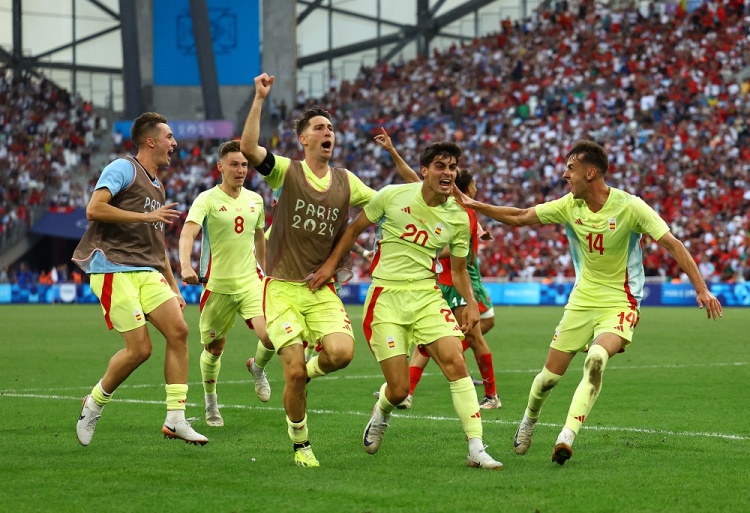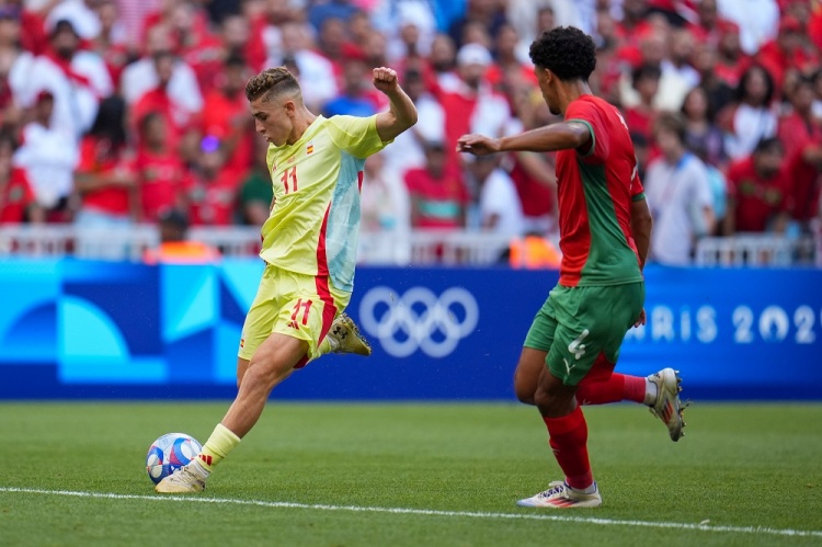 8月6日讯 北京时间8月6日凌晨0:00,奥运男足半决赛,西班牙对阵摩洛哥。上半场,主裁受伤被换下,费尔明屡造威胁,理查松造点、拉希米点射命中,巴埃纳中框。下半场,费尔明扳平,胡安卢替补建功。全场结束,西班牙2-1摩洛哥,跻身决赛。