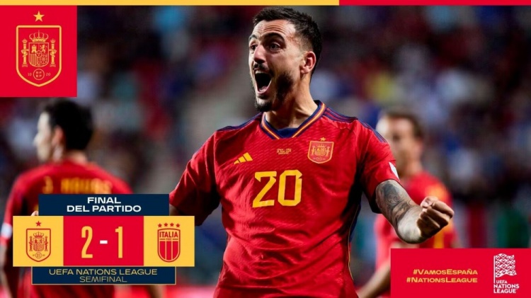 6月16日讯 北京时间6月16日凌晨2:45,欧国联半决赛,西班牙对阵意大利。上半场博努奇送礼,皮诺破门,因莫比莱点射,弗拉泰西进球但越位在先;下半场何塞卢绝杀,西班牙2-1意大利,决赛将在19号与克罗地亚交手。