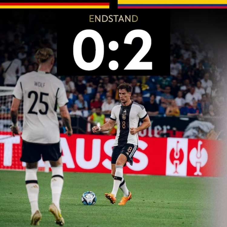 6月21日讯 北京时间6月21日凌晨2时45分,国际足球友谊赛,德国对阵哥伦比亚。上半场双方均无建树。德国半场0-0战平哥伦比亚。下半场,路易斯-迪亚斯首开纪录,基米希替补送点,夸德拉多点射破门。最终德国0-2不敌哥伦比亚,最近四场友谊赛都无法取胜。