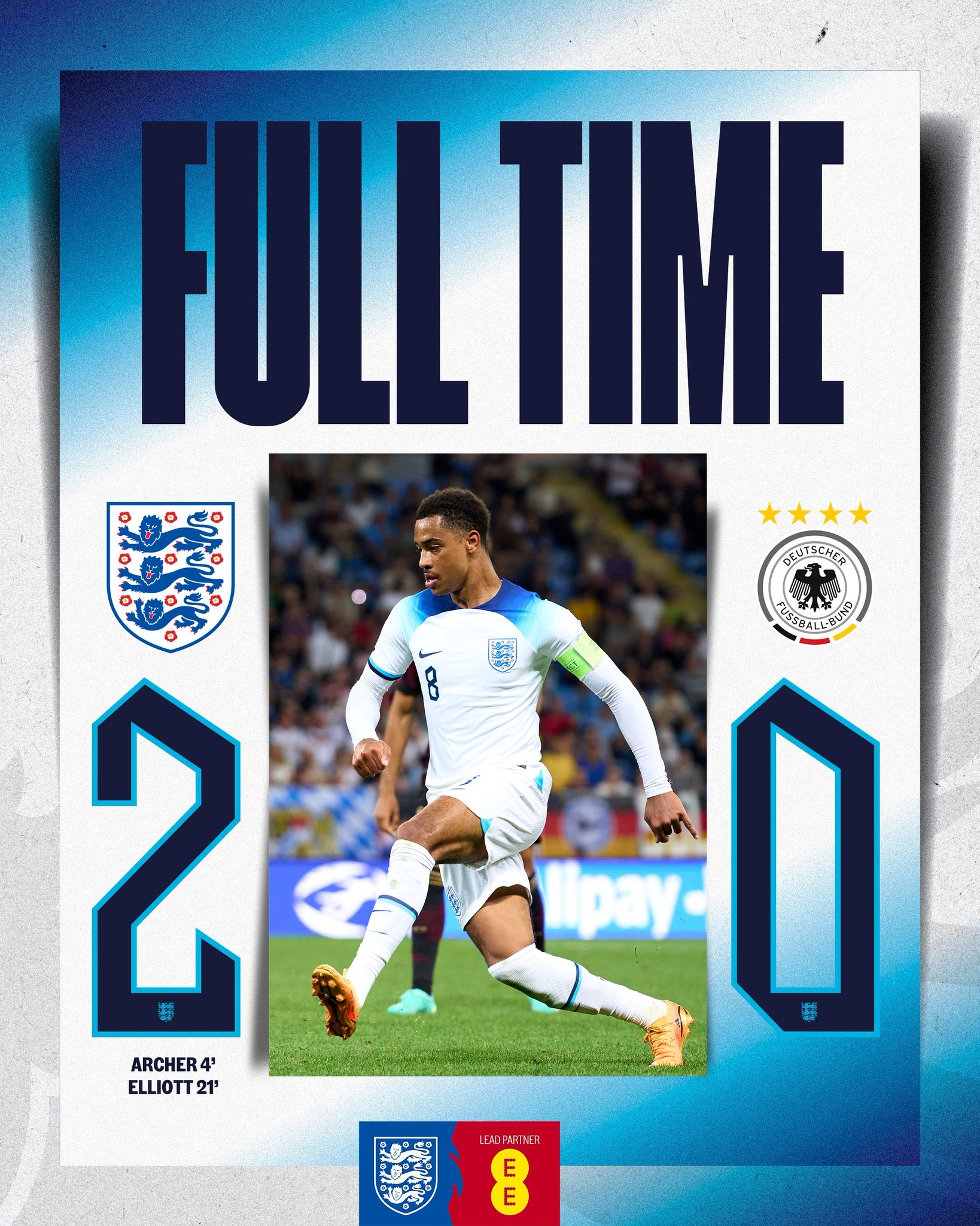 6月29日讯 欧青赛小组赛C组第三轮,英格兰U21队2-0德国U21,德国U21小组赛3场2平1负一胜难求,垫底出局。比赛第4分钟,英格兰开场闪击,阿彻尔破门,第21分钟,埃利奥特再下一城,英格兰将两球的领先优势保持到比赛结束。
