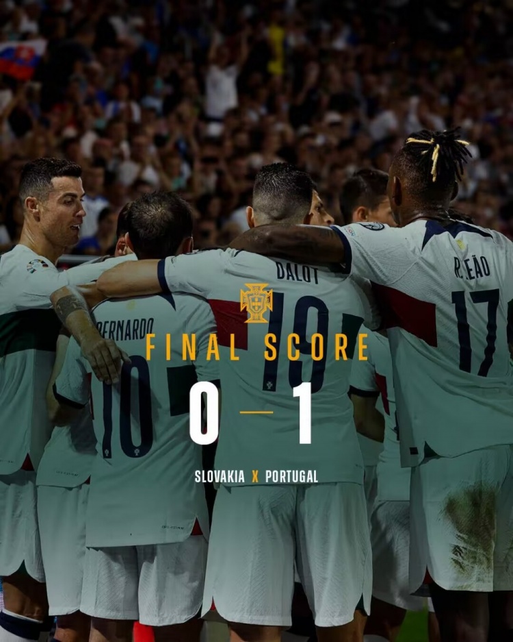 下半场伤停补时5分钟,全场比赛结束,最终葡萄牙1-0斯洛伐克。