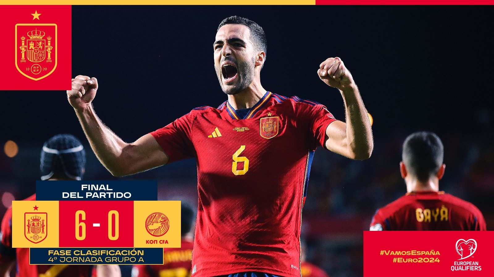 9月13日讯 北京时间9月13日凌晨2:45,欧洲杯预选赛外围赛A组,西班牙主场迎战塞浦路斯。上半场加维破门,尼科-威廉姆斯单刀球机会被对方门将挡出,梅里诺头球建功,莫拉塔进球被吹,西班牙暂2-0塞浦路斯;下半场何塞卢接到卡瓦哈尔助攻头槌破门,费兰-托雷斯双响,巴埃纳建功,最终西班牙6-0塞浦路斯,战绩来到3胜1负,塞浦路斯5战皆负小组垫底。