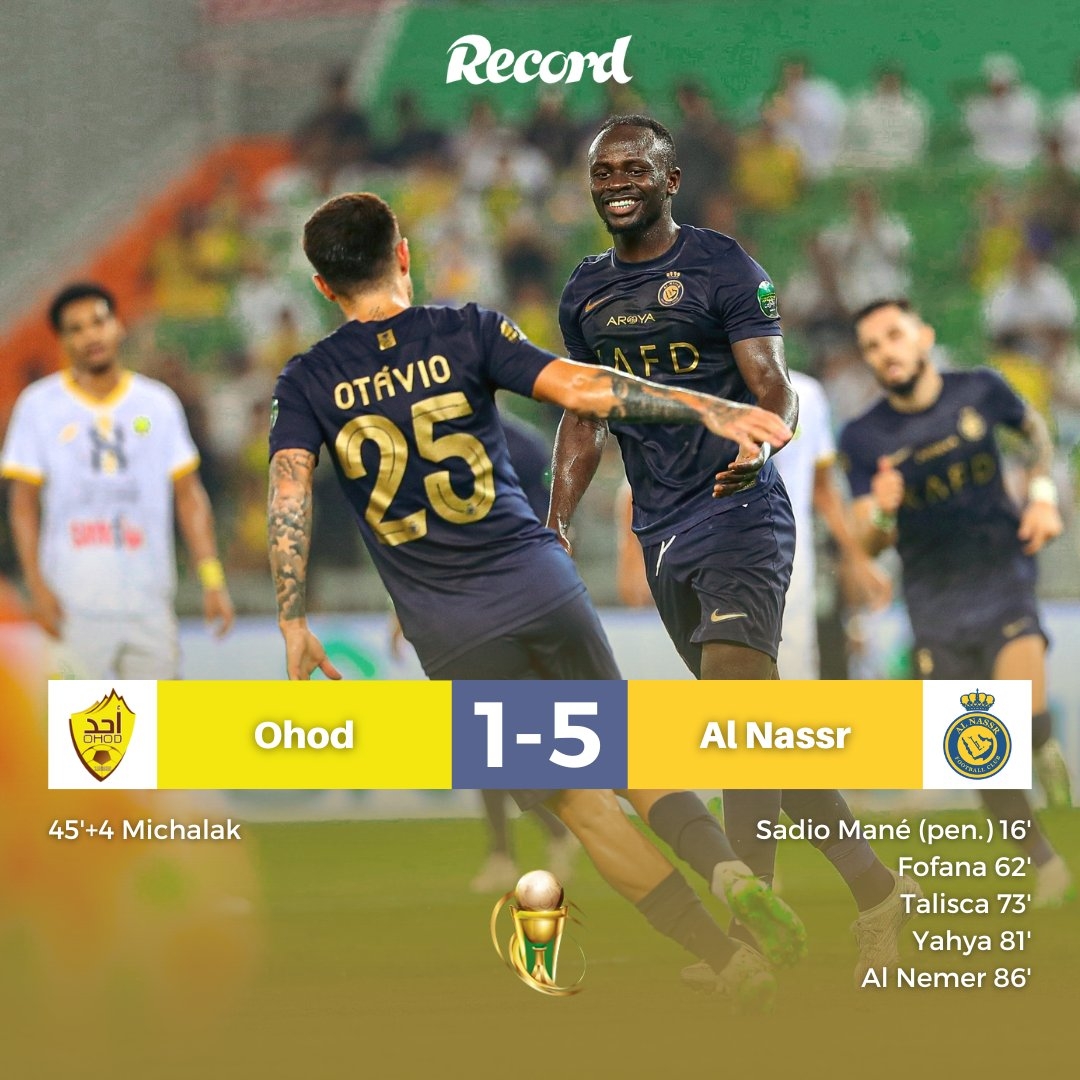 9月26日讯 北京时间9月26日凌晨2点整,2023-24赛季沙王冠第1轮展开角逐,利雅得胜利客场挑战尤胡德,C罗本场轮休。上半场马内点射首开纪录,米查拉克挑射追平,下半场福法纳远射反超,塔利斯卡头槌破门,叶海亚和纳吉锁定胜局。最终利雅得胜利客场5-1大胜尤胡德晋级下一轮,利雅得胜利取得各项赛事8连胜。