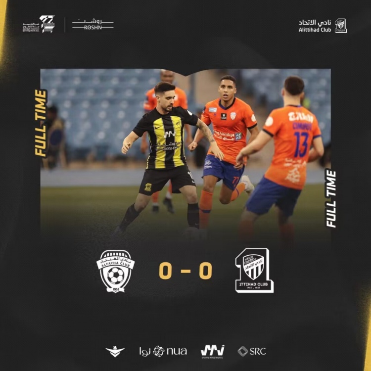 半场战罢,吉达联合暂0-0费哈。